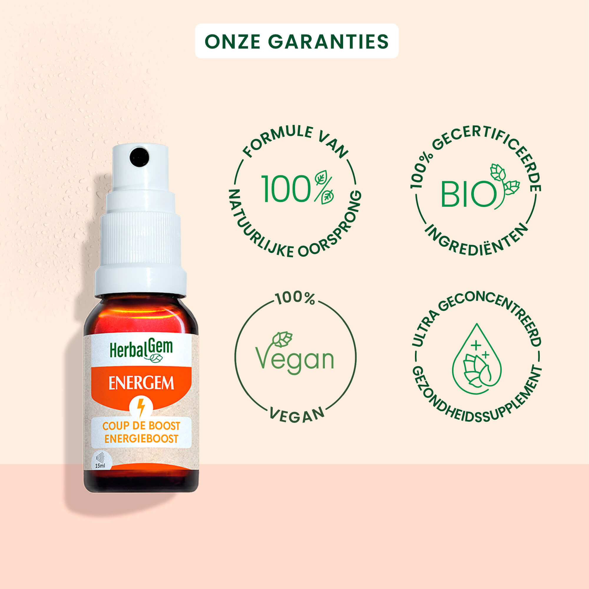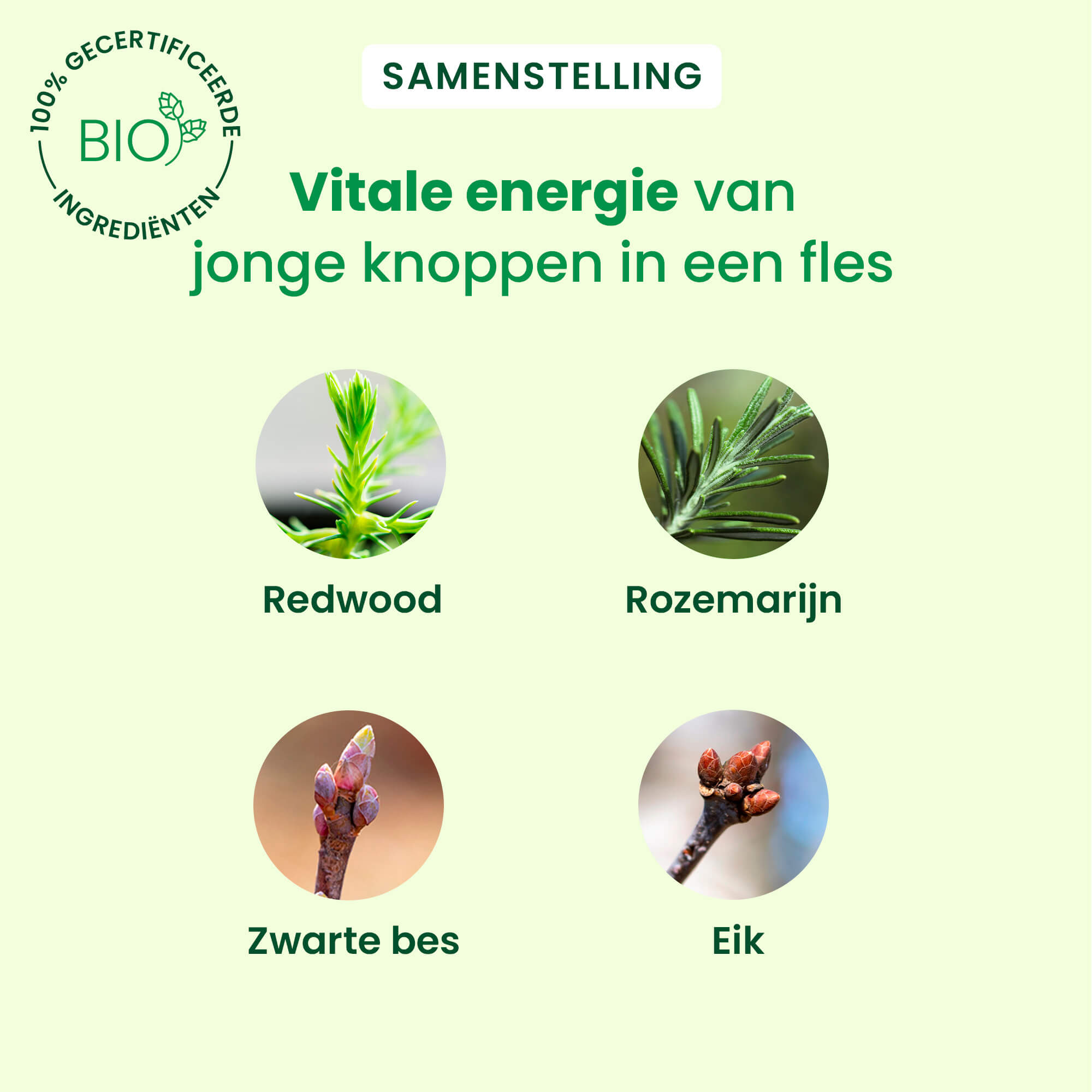 Ons concentraat van actieve ingrediënten van 4 verse knoppen geeft je een snelle energieboost* in geval van tijdelijke vermoeidheid.